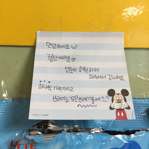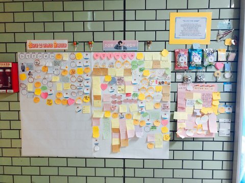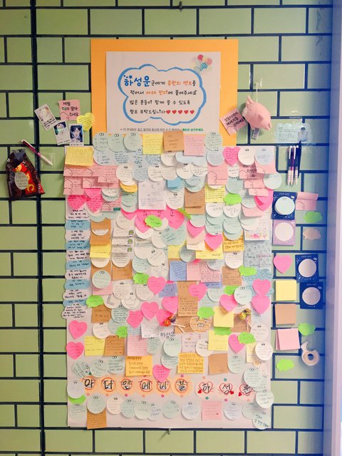 전광판에 붙혀진 포스트잇들은 하루마다 모아서 성운이한테 앨범을 만들어 준다고 함.
