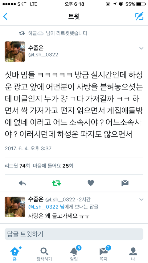 오늘도 역시 반나절만에 많은팬분들 다녀감...ㄷㄷ 그리고 넘나 착하심. 팬분들 먹으라고 사탕 젤리등 나눔하고 감 ㅠㅠㅠㅠ 착하쇼