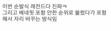 만약에 예시로 22등까지 생존인데 먼저 22등한 애가 베네핏 때문에 23위로 밀려나면 얼마나 비참할까...마찬가지로 이것때문에 1등에서 5등 사이 순위 바뀌면 팬들끼리 패고 난리날듯 설마 이건 아니겠지?