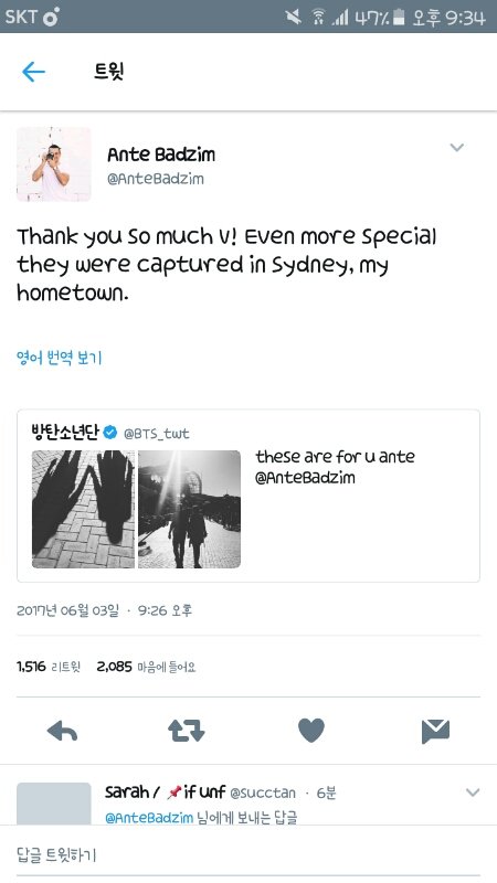 작가님이 시드니가 고향인데 태태가 센스있게 시드니에서 찍은 사진을 보냈나봐ㅎㅎ