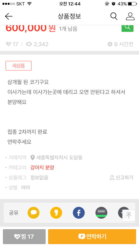 누가 번개장터에 강아지 분양한다고 올려놈 이건 좀 아니지않나 물건도 아니고ㅠ