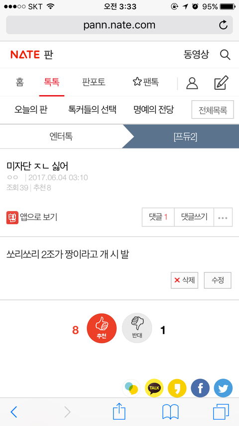 댓글 많은 톡