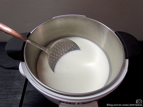 아무런 가공도 되지 않은 생우유가 가장 좋지만, 식품위생법상 구할 길이 없으므로 저온 살균 우유를 사용하도록 합니다.