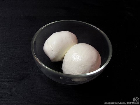 가게에 가면 널려있는 게 모짜렐라 치즈이지만, 직접 만든 모짜렐라 두 덩어리가 삶은 달걀과도 같은 자태를 뽐내고 있는 것을 보면