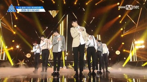 네버조 센터 뽑을때 황민현과 라이관린이 후보여서 둘중에 한명 거수투표로 뽑는 장면