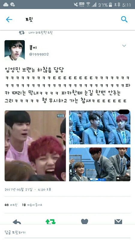 가만보면 프듀 동생들 임영민 되게 좋아함