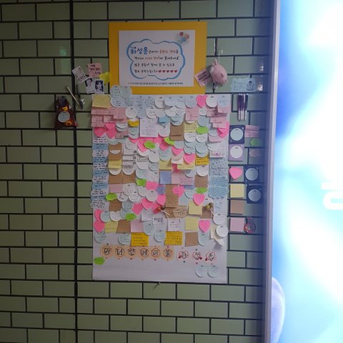 자세히 보면 팬들 초콜릿 먹으라고 붙여놓은 팬도있고