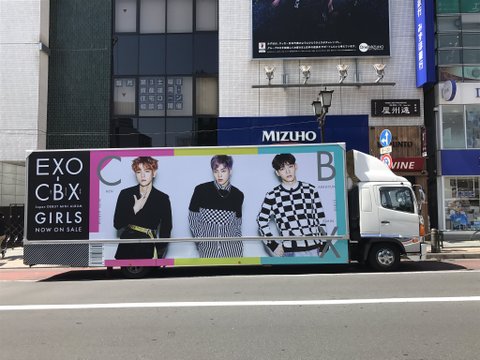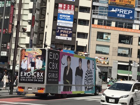 시부야에 첸백시 버스가!!!