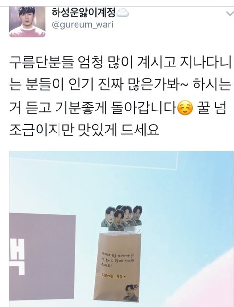 어떤 구름맘께선 성운이가 프듀에서 간접광고한 꿀들을 팬분들 드시라고 놓고가셨어요!