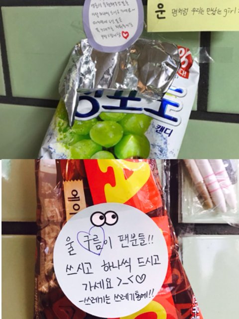 어떤 구름맘분들이 팬분들 드시라고 사탕과 초콜릿을 놓고가신적도 있었구 o(≧▽≦)o♥