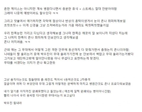 나도 대상포진 걸려봐서 아는데 진짜 정신력 존경스러울 정도임 무대에 올랐다는 거 자체도 대단하고 가사 1도 안 절고 안무 틀린것도 없고 무엇보다 한쪽눈으로 동선 다 맞춘거.. 근데 중간에 뒤로 걸어가는데 너무 힘들어보이더라 어깨가 축 처져가지고ㅜㅜㅜ 진짜 너무너무 아팠을텐데도 끝까지 최선을 다해줘서 고마워 꼭 데뷔시킬 거야