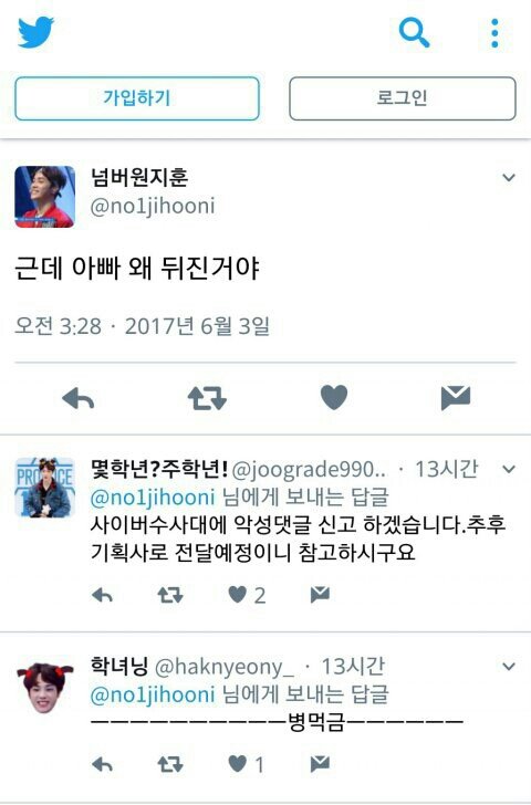 실력도 없으면서 욕심부린거 잘 못한거 맞아 그런데 우리가 티비에나오는 그 잠깐 모습으로 주학년이 정말 어떤사람인지 다 알수있을까? 이렇게까지 욕해서 니들이 얻는게 뭔데? 어제 보니까 주학년 카사노바설도 떠돌던데 인증은 안하고 삭제했더라 지금 톡선에도 주학년 까글만 6개는 되거든?? 난 이렇게 까지 까일일인지도 모르겠다