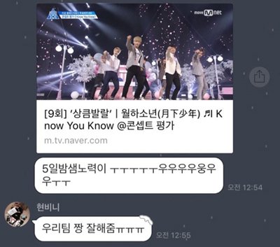 작곡가에게 한번에 오케이 받았지만,본인 칭찬 보다는 팀원들까지 같이 칭찬받고 싶은 현빈이.