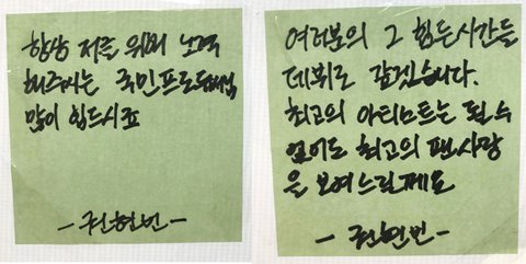 새벽에 자기 광고판에 와서 팬들한테 답장 붙여놓고 감