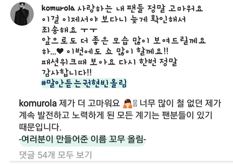 팬에게 '권현빈 올림' 이라고 표현하는 팬사랑