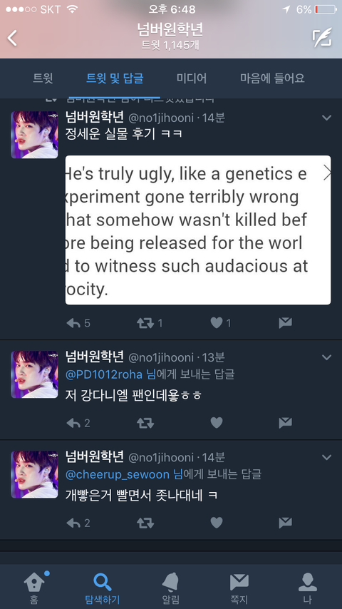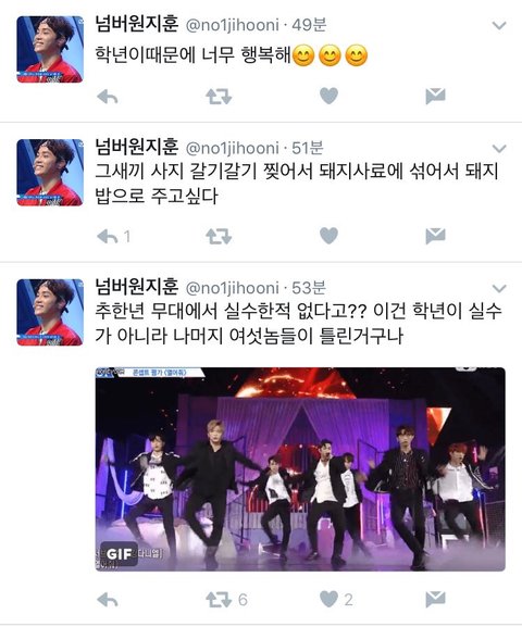 강다니엘 팬코까지 하넼ㅋㅋㅋㅋㅋ 정세운 외모 비하까지 하고