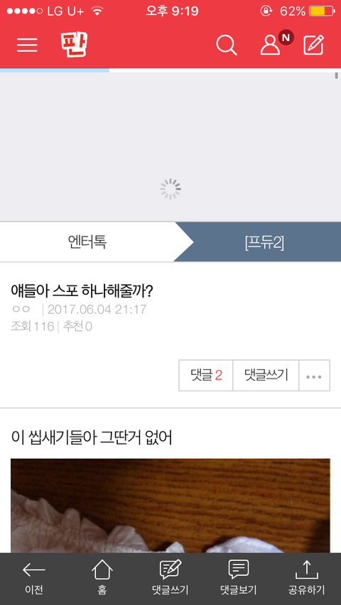 프듀글때문에 엔터에 똥짤뿌리는데 조회수봐봐