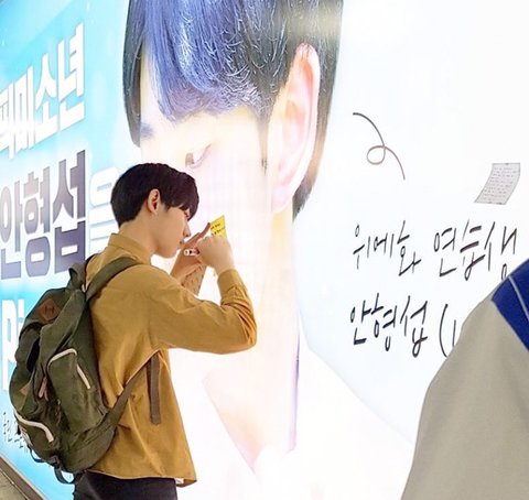 팬들에게 고마운 마음을 담아 포스트잇으로 메세지도 붙이고 갔음ㅋㅋ