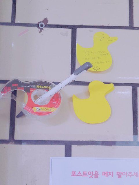 불과 몇시간 사이 형섭이가 붙이고 간 포스트잇을 누군가가 떼어서 가져가 버렸고