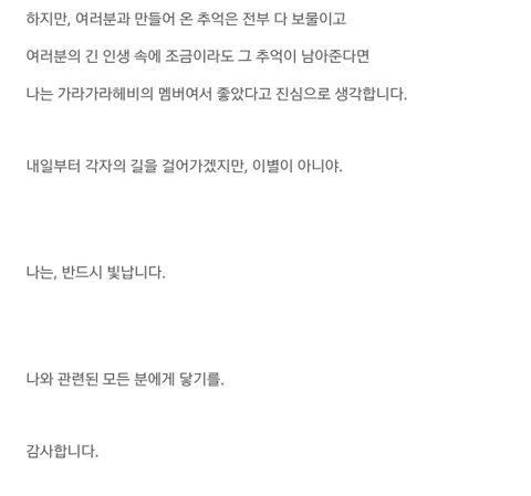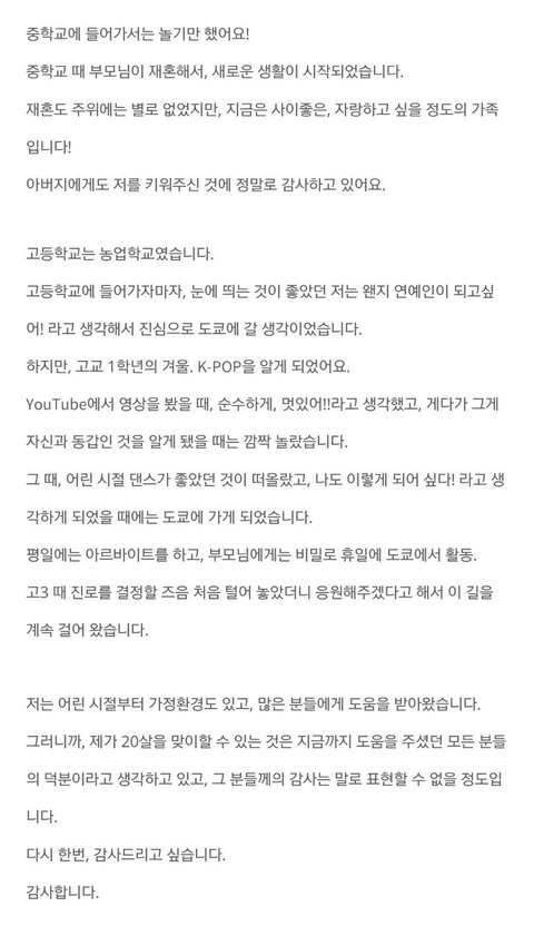 이건 한국에 오게 되면서 댄스커버팀에서 나올때 적은 글이야 "나는 반드시 빛납니다" 이 한마디로 팬들 오열ㅠㅠ..켄타 의지가 절실하게 느껴져서 진짜 더 마음이 아팠어 그런데 준영이는 이런 애 악편을 하려고 하니까 더 마음이 아프지