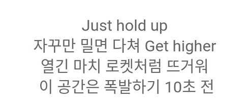 소방차 가사인데 뜬금없이 '폭발'이라는 단어가 나온 걸 봐서는 Get higher가 폭죽과 연관이 있다는 걸 알려주는듯해.