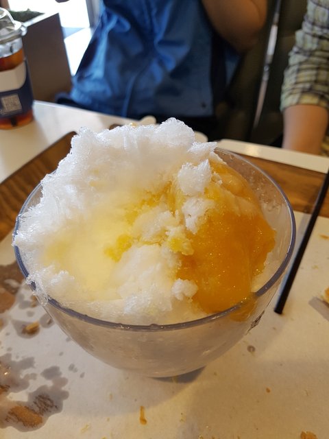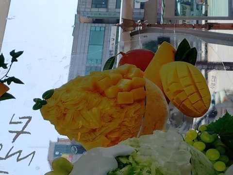 더운 날이어서 시원한 빙수를 먹으려고 갔습니다. 가게 외벽 창문에 붙여놓은 망고 빙수가 정말 맛있어 보여서 주문 했는데... 나온 빙수는 이랬습니다. 정말 어이상실! 파리바게뜨! 이렇게 영업해도 되는겁니까? 이거 사기 아녜요?