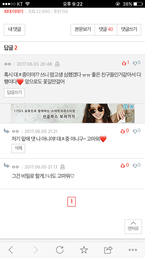 ++) ㅈㅍ중이란댓글 어떤애가 혼자 주작한건가봐ㅠㅠ