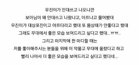 아픈데 우리가 실망할까봐 이악물고 나왓다고..