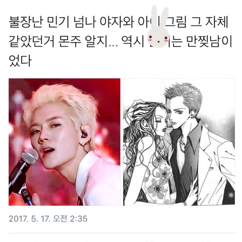 사진보는대로 민기가 무대하고 난 다음이면 만화책그림체와 비슷하다며 반응이 오곤함 (하지만 분량이 극나노이기때문에 팬들만 아는건 안비밀)