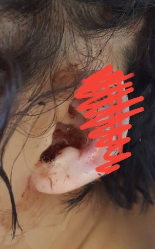 병원도착후 발작이심해 두시간동안 묶여있다가 정신은차린후 수술에 들어갔지만 떨어진 귀는 괴사가 일어나서