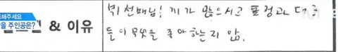 신나게 지렁이가 꿈틀대는 필체에 한번 발렸고 맞춤법에 두번발렸다 앎이거 틀리는 사람 많은데 우래기는 알고 있었음 ㅠㅠㅠ