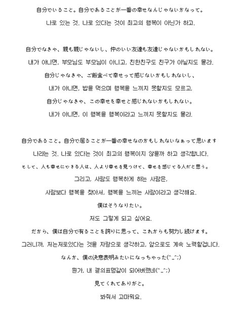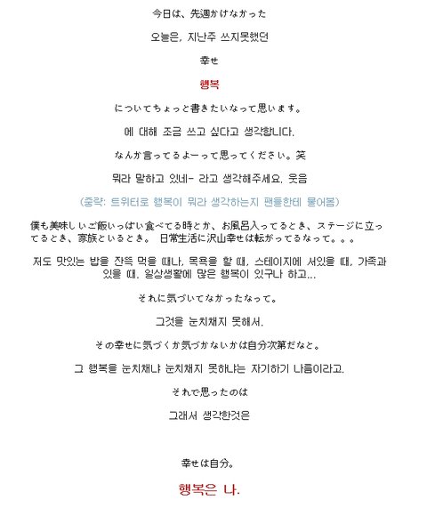 켄타가 생각하는 행복의 의미야 켄타 글 읽고있으면 힐링됨ㅇㅇ