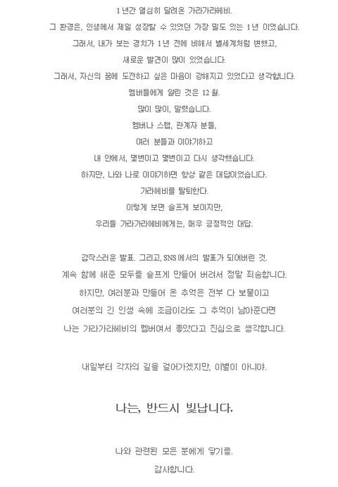 가라헤비를 탈퇴하면서 쓴 글이야