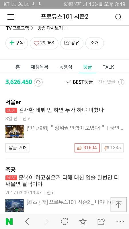 프로듀스 네캐 영상에 댓글달린거전부통틀어