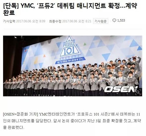 여자 프듀에 이어 남자 프듀 데뷔팀 매니지먼트도 담당하게 된 YMC엔터.jpg