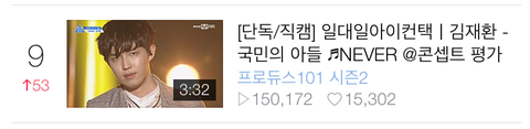 오늘 직캠 순위도 53위 상승해서 9등...