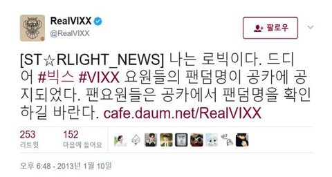 사진 출처: 빅스 공식 트위터( https://twitter.com/RealVIXX/status/289564462288101376?s=09)