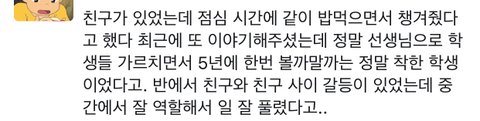 너무 마음씨가 예쁘지 않니 소외된 친구 도와주고 같이 노는게 당연해보여도 막상 먼저 다가가고 도와주는게 쉽지만은 않음ㅇㅇ 근데 선호는 진짜 어떻게 다가가서 어떤 얘기를 하면서 급식을 같이 먹었을까 너무 너무 너무 ㅈㄴ궁금함 분명 그 친구는 아직까지도 선호를 고마워하겠지ㅠㅠ 선호 마음씨 너무 예뻐서 뒤져버릴 것 같다 하 눈물나와 분명 유선호 다정하게 먼저 말 걸어줬겠지?ㅠㅠ