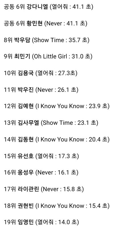 ㅋ.....형섭이........... 종현이는 파트가 한마디 형섭이는 한마디도 안됨 꼴등이랑 1등 14배 차이남