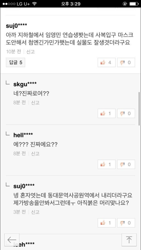 애들아 영민이 목격글
