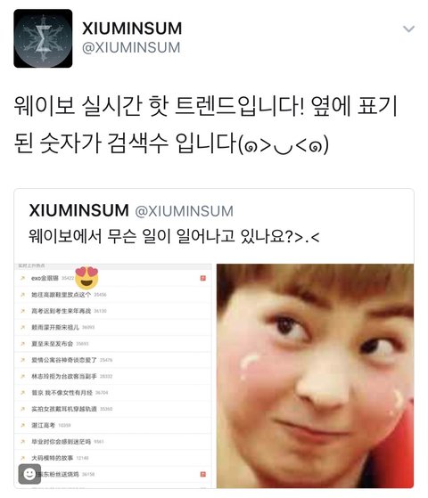 실시간 웨이보 핫트렌드에 시우민!!!!!!