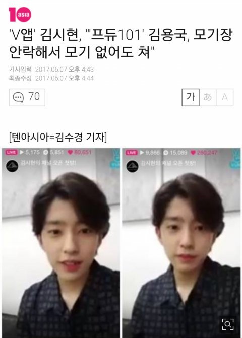 오늘 김시현이 춘채널 오픈기념 브이앱을 켰는데