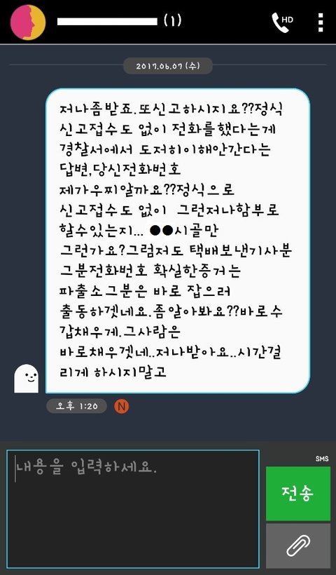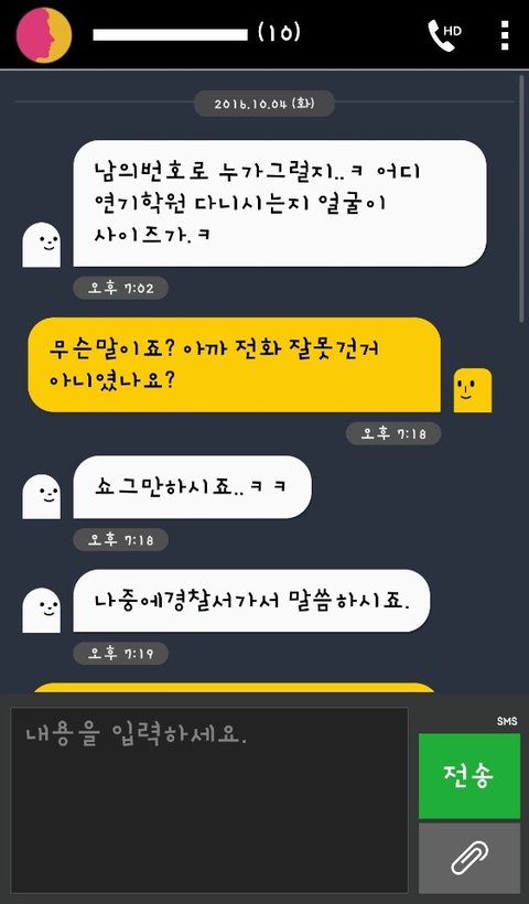 받자마자 다짜고짜 소리지르며 욕을 하길래 다른 번호랑 착각해서 잘못걸었나보다 싶었는데