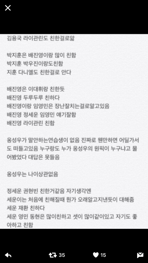 사진들은 짹에서 퍼온 지인피셜썰이나 탈락한 연습생들이 한 얘기!