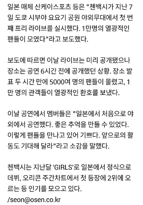 엑소 첸백시, 日 첫 무료공연에 1만팬 몰렸다..'열광'