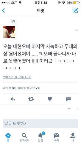 ㅋㅋㅋㅋㅋㅋ대현이 사녹하고 무대의상 찢어졌대ㅋㅋㅋㅋ