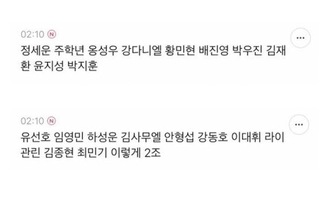 심지어 1조에 민현이 혼자있어 2조에 플디 3명...