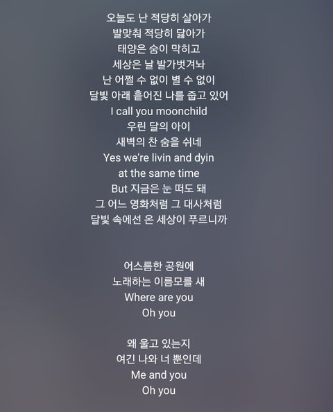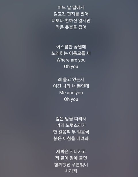 가사 너무이쁘고 새벽감성 돋아서 그런가 눈물난다... ㅠㅠㅠㅠ 태형아 남준아 이렇게 좋은 노래 들려줘서 너무너무 고마워 사랑해 ㅠㅠㅠㅠㅠㅠ♡♡
