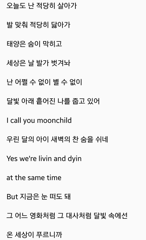 아래는 낮누 파트... 진짜 너무 고마워. 정말 너무 위로가 되고 있다 진짜... 눈물도 나고 정말 고맙고 한편으론 먹먹해져...ㅠㅠ 태형이도 남준이도 참 가사 이쁘다. 그냥 모든게 다 고맙다 애들한테