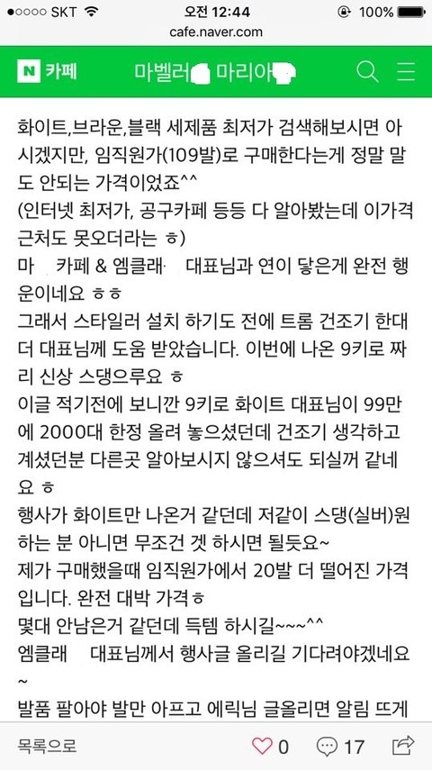 그리고 L* 다니면서 사람들 10명씩 모아서 임직원 할인으로 공동구매 시키고 있습니다.